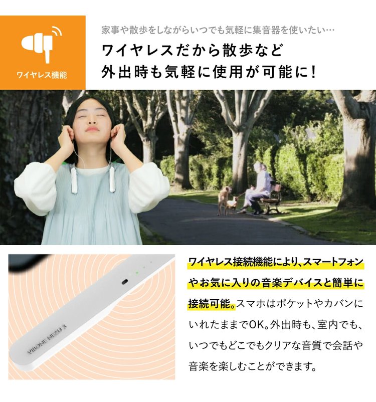 「Vibone nezu 3 骨伝導集音器」ネックバンド型ワイヤレス骨伝導イヤホン
